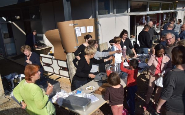 Puis ce fut le ballet des assiettes autour du buffet des victuailles apportées par les uns et les autres et les discussions reprirent de plus belle pendant le repas arrosé par les vins divers et variés choisis avec soin et apportés par les convives. Les enfants profitaient du moment pour courir, jouer dans les espaces de jeux ou comploter par petits groupes mais toujours sous l’œil vigilant des parents.