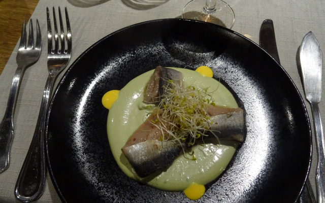 Au menu, apéritif, filet de sardines marinés au vinaigre de framboise, mayonnaise à la chlorophylle, coq au vin et sa garniture bourguignonne, crème brûlée à l’anis de Flavigny, quelques bons vins à consommer avec modération , café et crémant