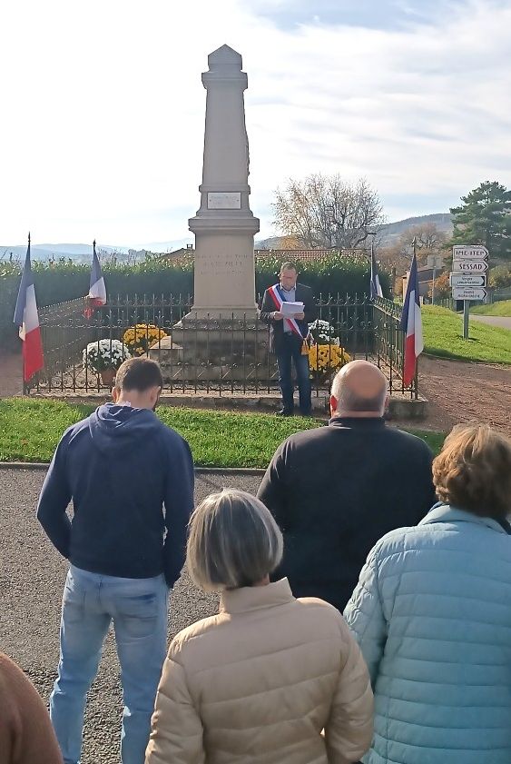 11h45 : lecture du message de Madame Catherine VAUTRIN, ministre des Armées et des Anciens Combattants et de Madame Alice RUFO, ministre déléguée auprès de la ministre Mme VAUTRIN par le Maire monsieur Gilles CHARPY-PUGET. Ce dernier complète le message de la Ministre en mentionnant le décès du Maréchal des Logis-chef Fany CLAUDIN du 121e régiment du train à Montlhéry, dernier mort pour la France à 23 ans au Liban le 15 novembre 2024.