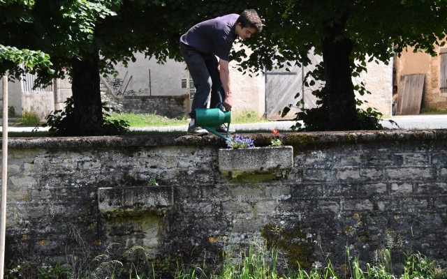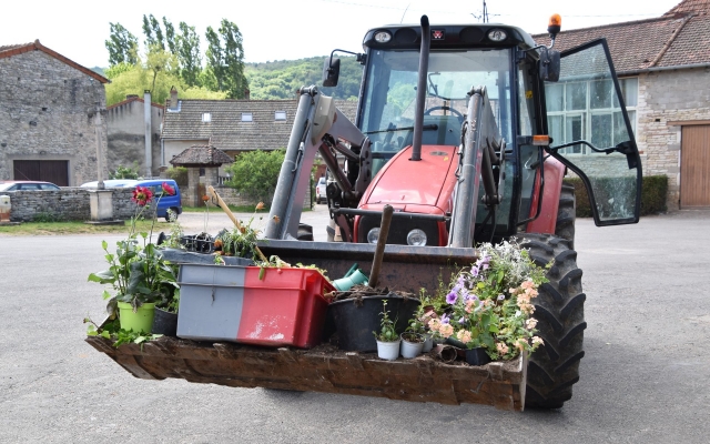 Bacs, jardinières et massifs ont repris des couleurs et vont contribuer à rendre le village plus attrayant, enfin presque, si on ferme les yeux sur les épaves de voitures abandonnées ici et là…