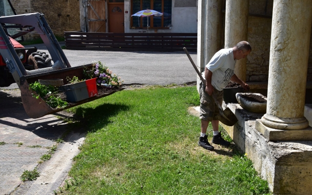 Ce dimanche 20 mai était le jour idéal pour lancer l’opération rénovation des massifs et plantation des fleurs dans tout le village. Toute l’équipe de Christophe Point (Carole, Myriam, Claude et Romain) a donc profité du beau temps revenu pour planter fleurs et plantes préalablement choisies et achetées au LPA de Tournus.