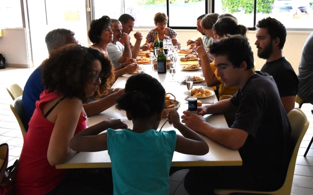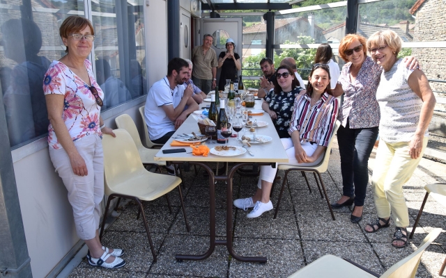 On pouvait prendre un verre dehors, puis emporter sa barquette et ses gaufrettes (on a frôlé la rupture de stock) mais aussi s’installer pour le déjeuner, le service étant assuré avec gentillesse et convivialité. Du coup, l’équipe “fleurissement” en a profité pour y faire sa pause de midi.