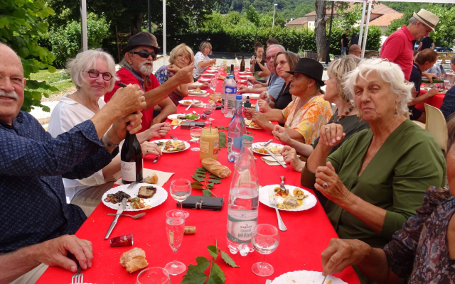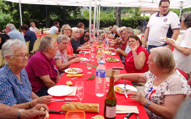 Sur l’espace « Liberté », une soixantaine d’habitants de Cruzille se sont retrouvés autour d’une bonne table pour vivre un bon moment de convivialité et de partage. Suite à l’apéritif offert par la municipalité et la remise des cocardes à la classe en 2, le repas sous forme d’auberge espagnole fut partagé.