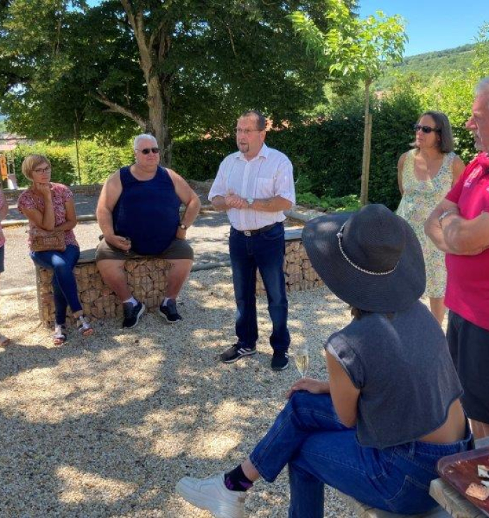 Après avoir souhaité la bienvenue à toutes les personnes présentes, Monsieur le maire a profité de l’occasion pour inaugurer ce nouvel espace réaménagé avec 2 terrains de pétanque, un espace pique-nique et un espace « four à pain ». Il a aussi remercié toutes les personnes qui avait participé de près ou de loin au relookage de cette place en particulier Monsieur Patrick Michoud qui a mis à disposition gratuitement son tractopelle pour la réalisation des terrains de boules.