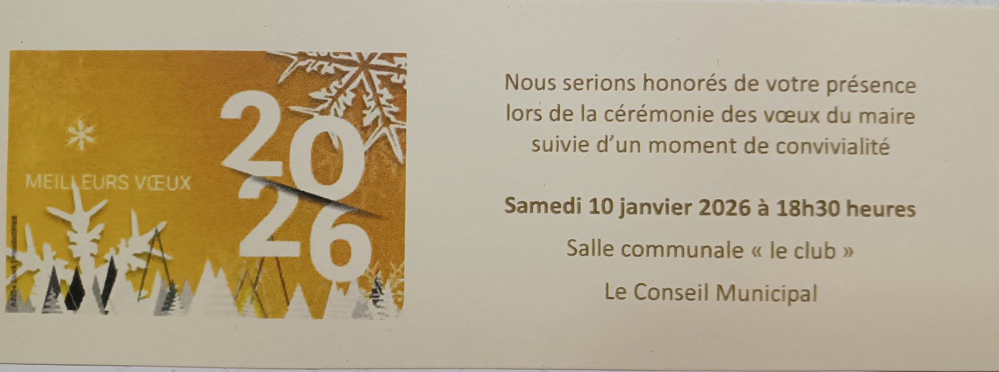 Il a ensuite souhaité aux personnes présentes une bonne soirée, festive et conviviale, un bon appétit et présenté ses meilleurs vœux pour 2026 :